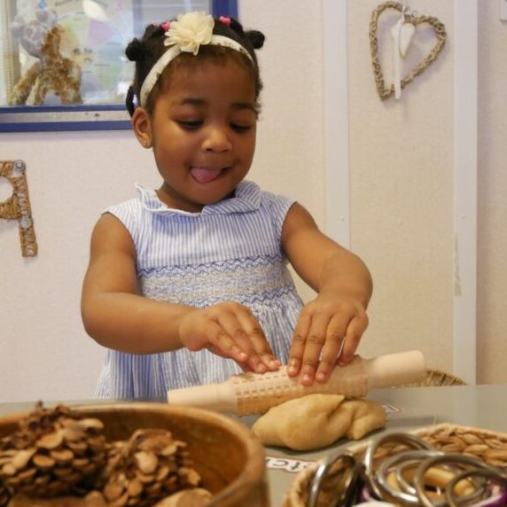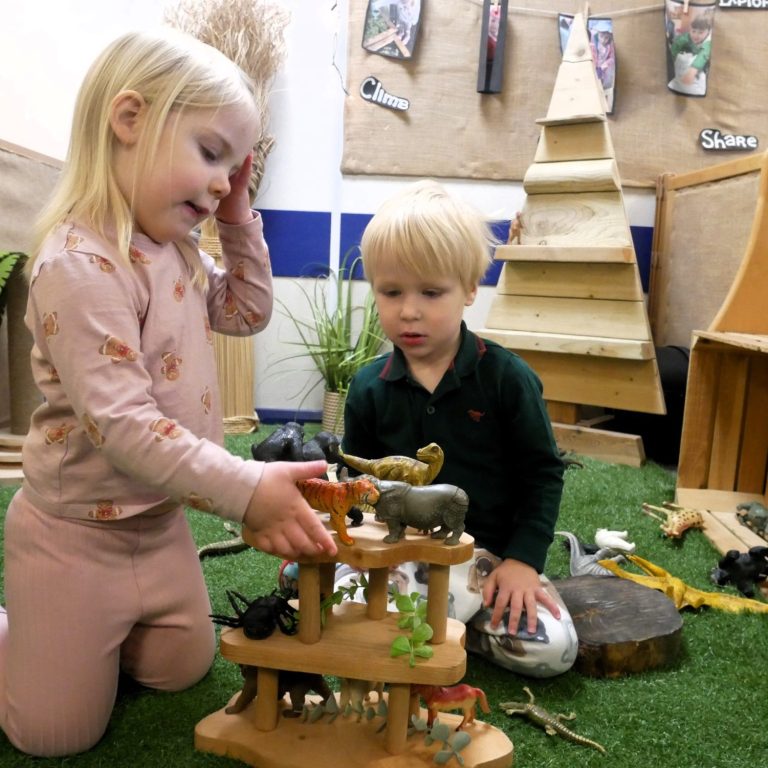 The rising three’s children are based in The Saplings room and love their room with authentic home corner, art station and curiosity area, as well as an awe-inspiring book den.