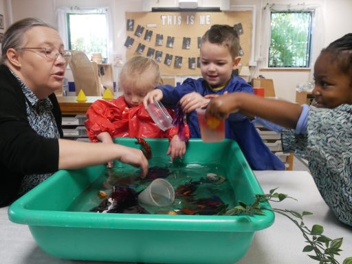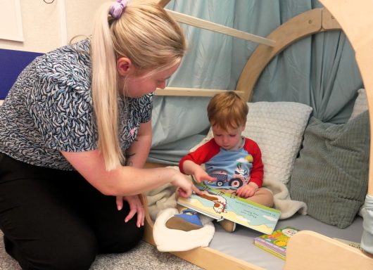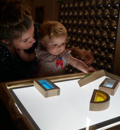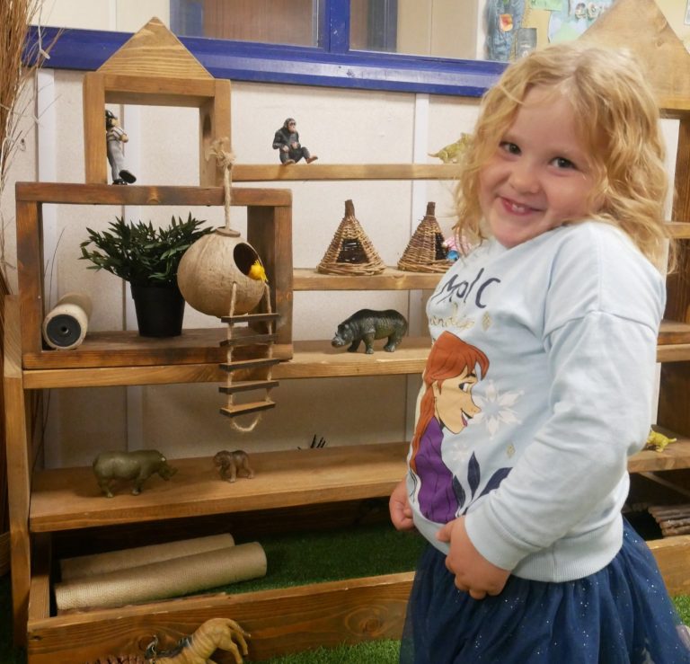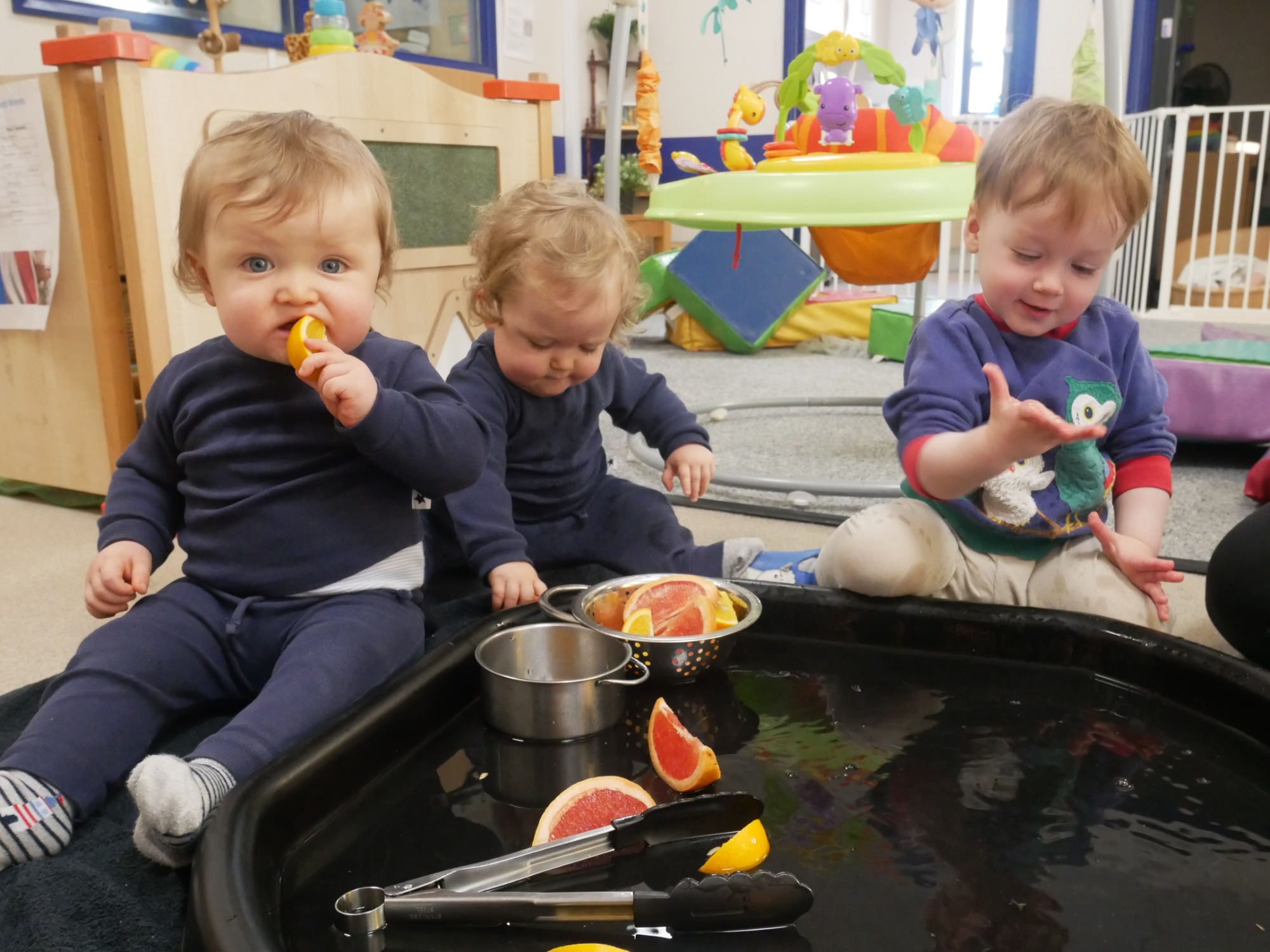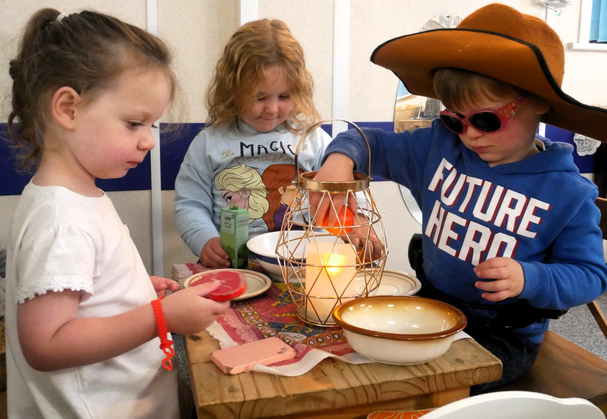 The rising three’s children are based in The Saplings room and love their room with authentic home corner, art station and curiosity area, as well as an awe-inspiring book den.